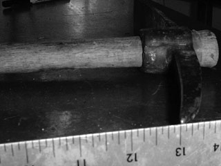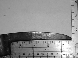 Pickaxe pointed end is approximately 4" long. The blade tapers at a 25 degree angle out to the base.